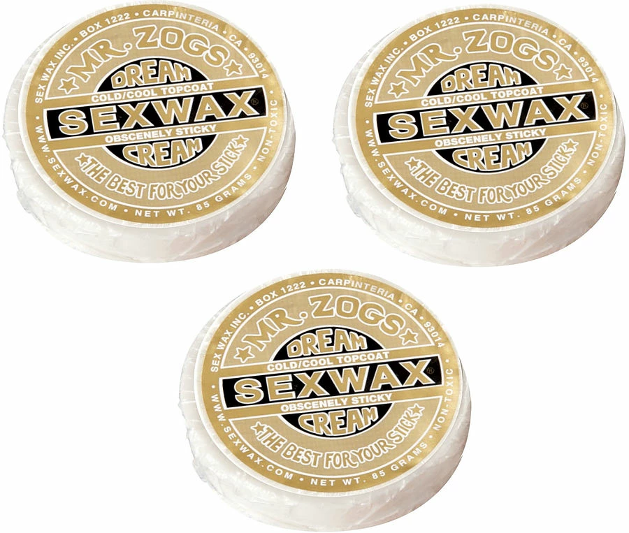 Mr. Zogs Sex Wax Dream Cream is the latest in topcoat technology. Zogs suggests that this be used sparingly, and by experienced surfers only. This Gold label Dream Cream is good for water temps between 68°F or 20°C below, and is recommended to be used over the appropriate Quick Humps Base. Store in a wax container or leak proof bag to avoid unwanted mess.
