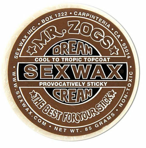 Mr. Zogs Sex Wax Dream Cream is the latest in topcoat technology. Zogs suggests that this be used sparingly, and by experienced surfers only. This Bronze label Dream Cream is good for water temps between 56°F to 84°F (13C° to 29C°), and is recommended to be used over the appropriate Quick Humps Base. Store in a wax container or leak proof bag to avoid unwanted mess.