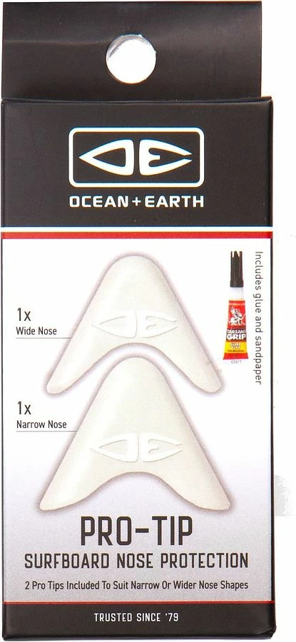 Pack comes with two white nose guards, installation instructions, tube of supa glue and free Ocean and Earth Sticker sticker