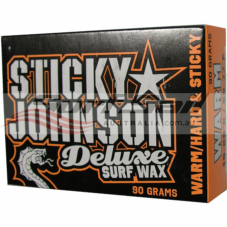 Non Toxic Surf Wax which uses natural ingredients for superior traction.This deluxe surf wax has been scientifically engineered to provide a wax which is easy to apply, sticky, long lasting and super grippy!! Sticky Johnsons Deluxe Surf Wax is exported globally and is fastly becoming regarded as one of the best wax’s in the world! Grab a block and feel the difference…